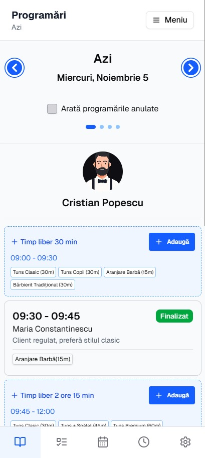 Gestionează programări, clienți și servicii dintr-o singură interfață simplă.