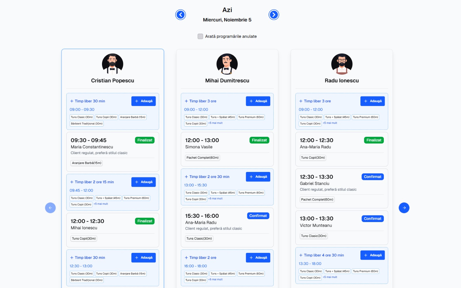 Gestionează programări, clienți și servicii dintr-o singură interfață simplă.
